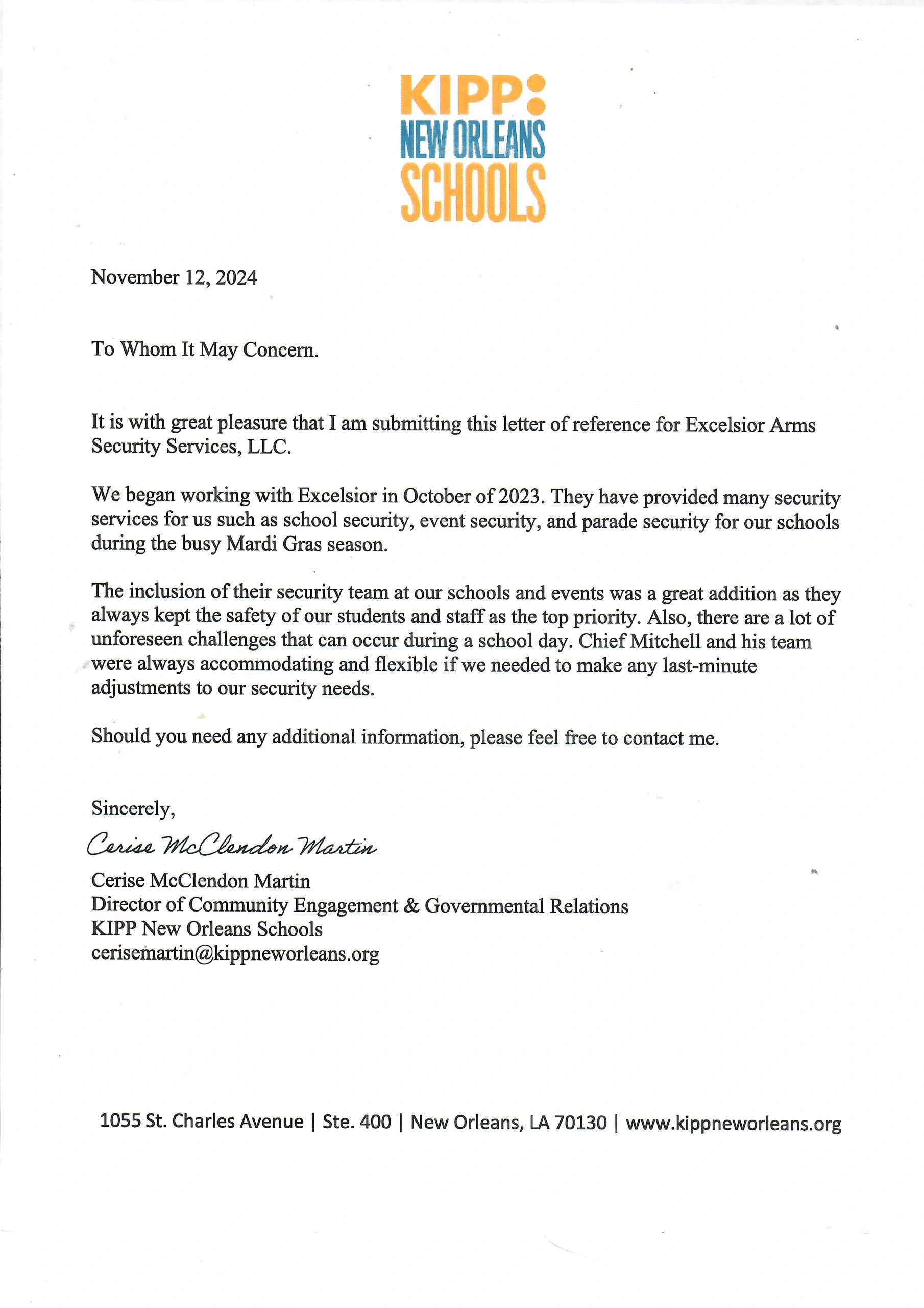 At Excelsior Arms Security Services, LLC, we are committed to the safety and well-being of our community. We will continue to work tirelessly to ensure that such tragedies are prevented in the future. Together, we will find strength and resilience in the face of adversity. Let’s continue working together for a safer city. Join me and my team in the fight against crime in our community, schools, churches, and businesses. Remember, if you see something, say something, New Orleans!